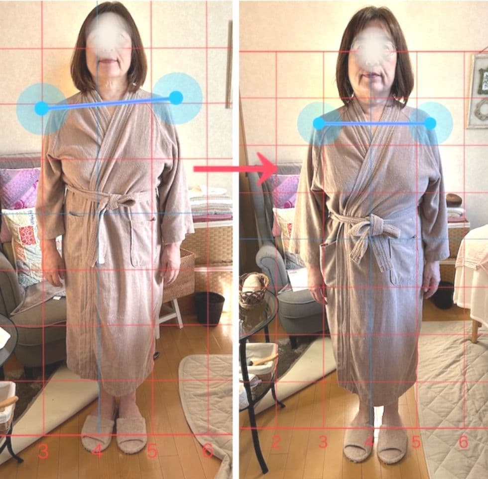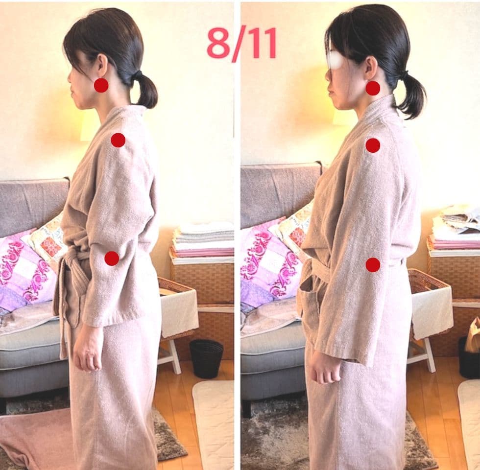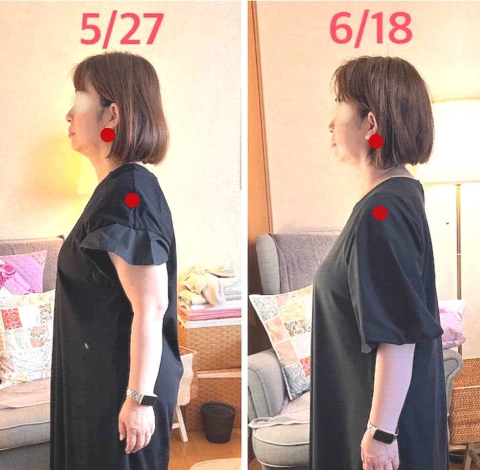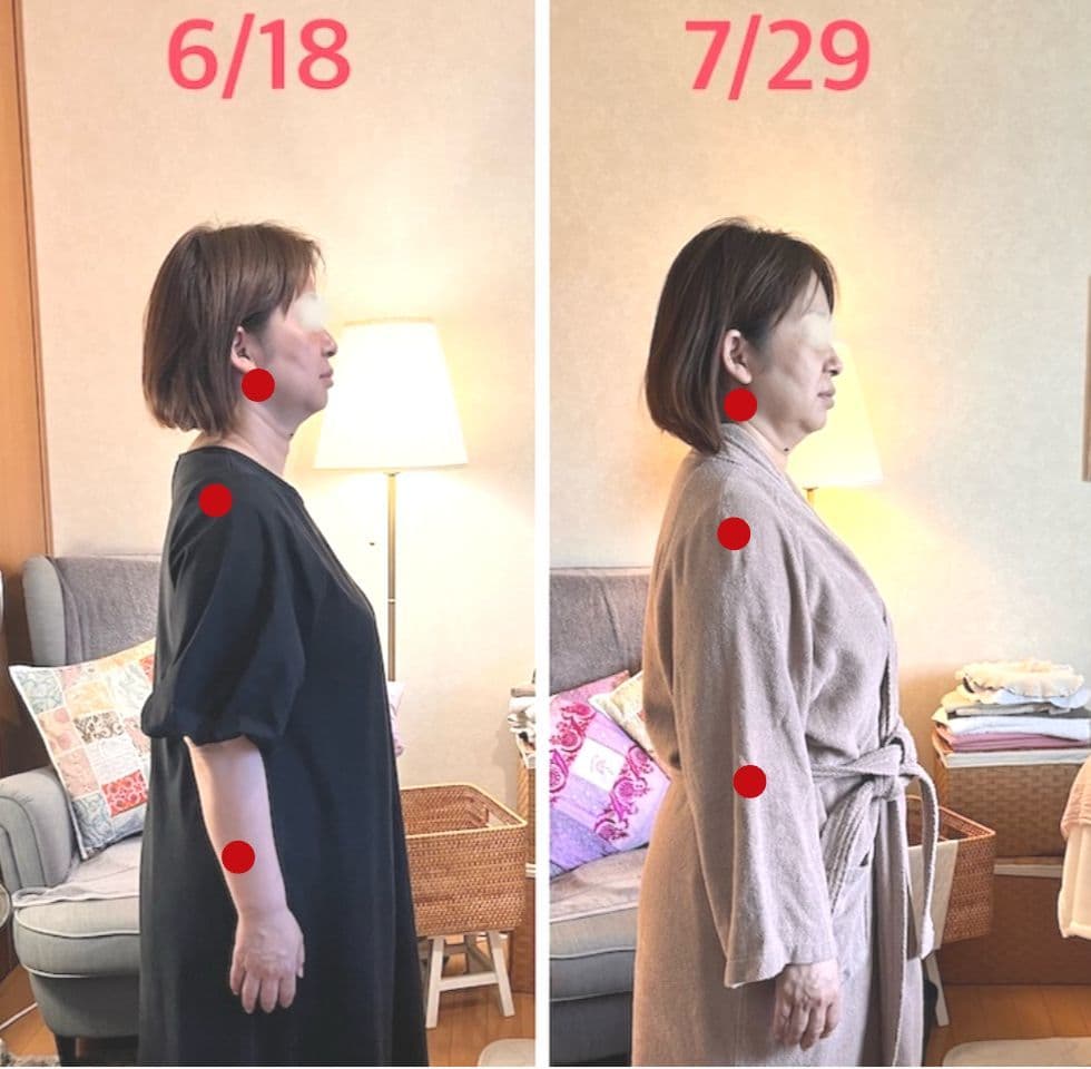 姿勢プログラムを受けてから、体調もよくなってきていて、姿勢と体調の関係が感じられています。フェイスラインもすっきり上がって嬉しい効果で全体的にも良かったです以前との変化があります。腰の痛みはしばらく無かったですし、おしえてもらったストレッチと少しヨガ的にがんばって腰痛も出にくくなっています