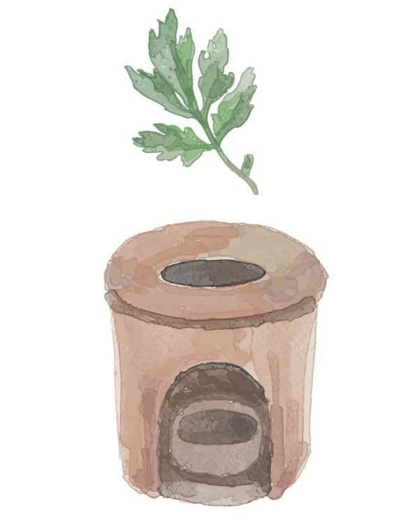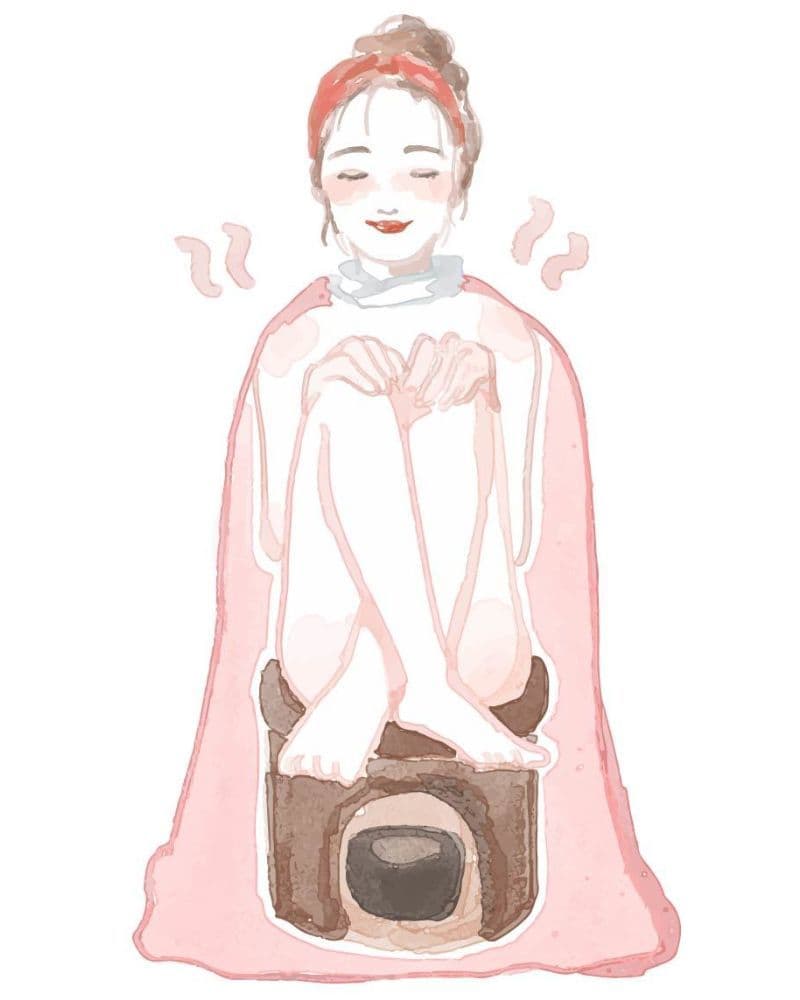 部屋を適温にし、よもぎを壺の中で煮てお待ちしております。